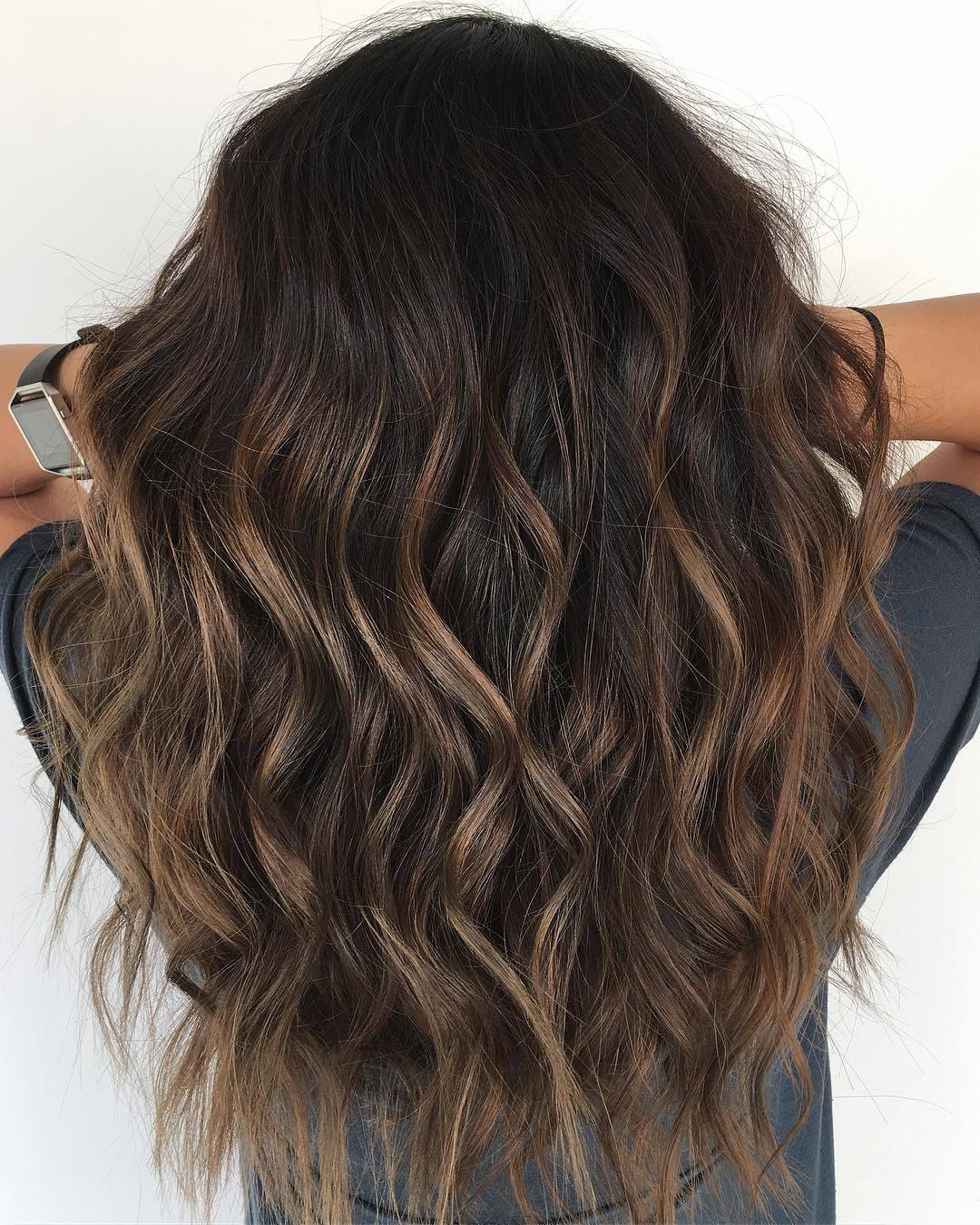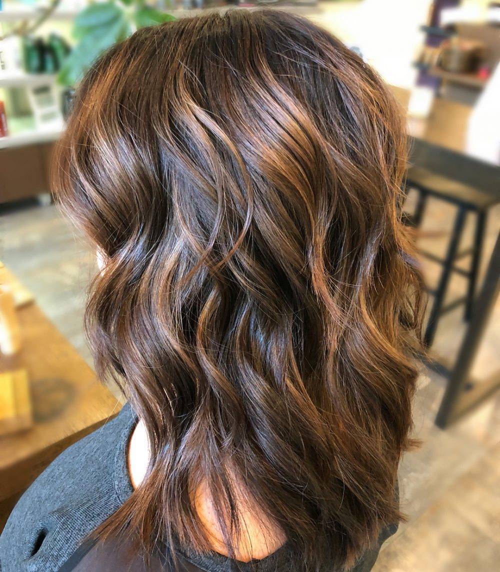 Credit photo: instagram.com/kellynaso Reddish tones on brunette hair have always been a fan favorite. Start with a dark burgundy or deep chocolate brown base and add chunky caramel highlights with a sprinkle of blonde for a dazzling style that exudes color and dimension.Credit photo: instagram.com/kendalllevans For those who prefer to wear their hair down, this medium-length cut featuring bold, choppy layers and a dramatic darker brown balayage is simultaneously playful and sexy. For a bolder effect, graze the layers with a lighter shade. Mixing light caramel with deep black creates a sultry and sophisticated look.