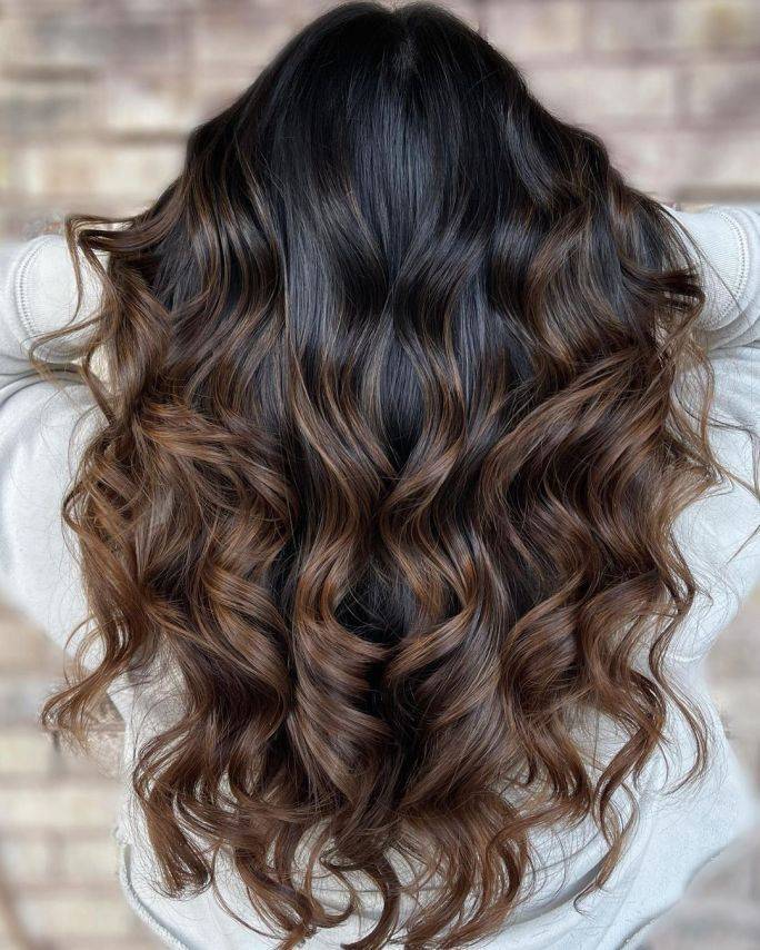 Credit photo: instagram.com/a.shtyrts Brunettes will look absolutely stunning when adorned with black and brown balayage hair accented by soft cinnamon highlights. The wavy style exudes a seductive and playful allure.